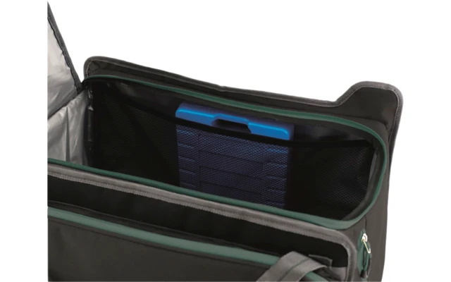 - Bolsillos interiores de malla para bloques de hielo o botellas